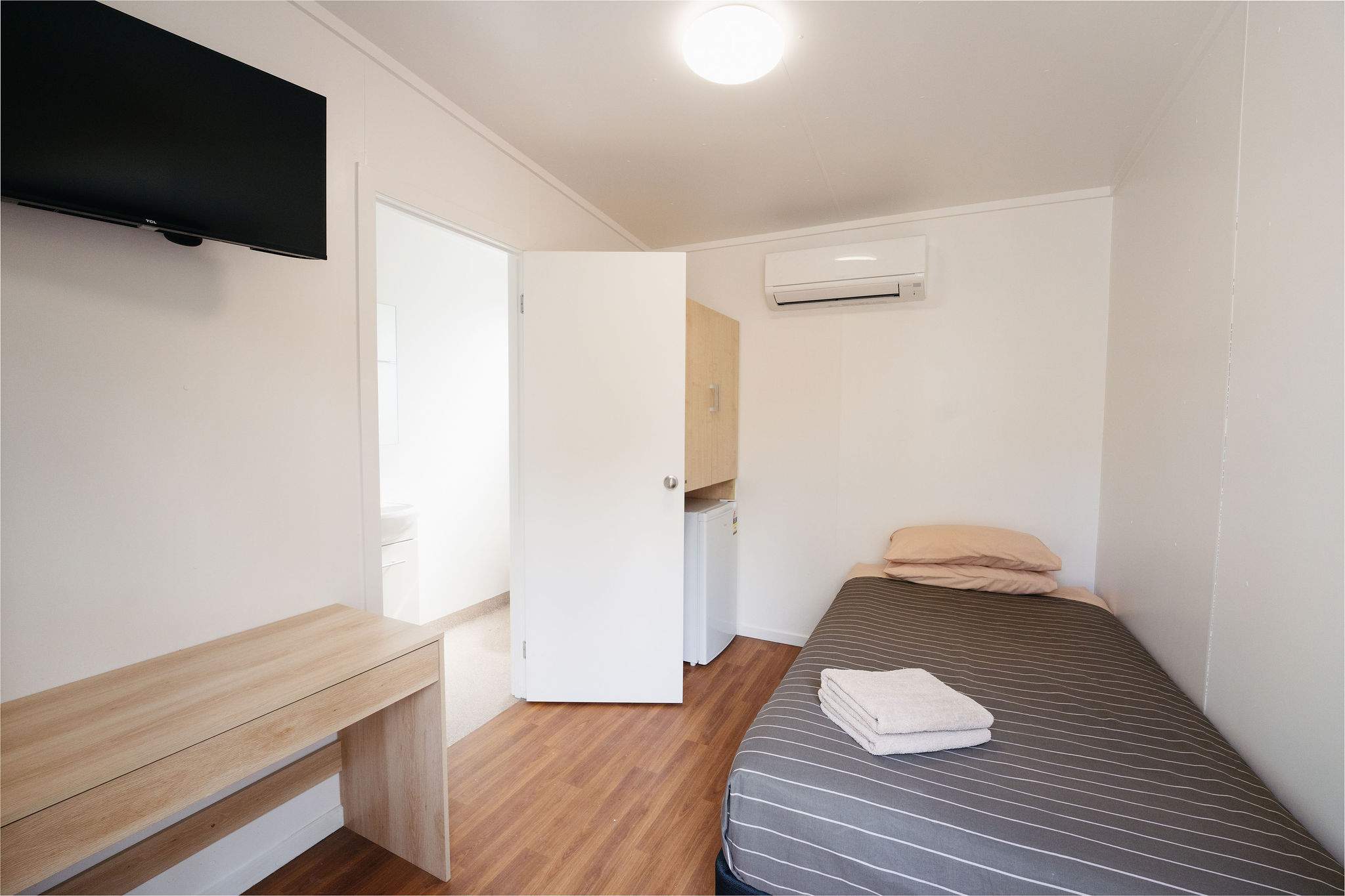 Located in the centre of Norseman, The Lodge Village is perfect for a restful night's sleep. With walking distance to the local IGA and Norseman Hotel, the Village is well-positioned for those who fly in fly out. Each room in the Village comes equipped with an ensuite, desk and chair, a smart TV for streaming and complimentary unlimited high speed Wi-Fi. We provide two different size rooms, either with a King Single bed or a Queen bed in our double rooms.